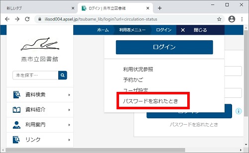 →パスワードの初期設定が必要です。お手数ですが、燕市立各図書館のカウンターまでお問い合わせください。